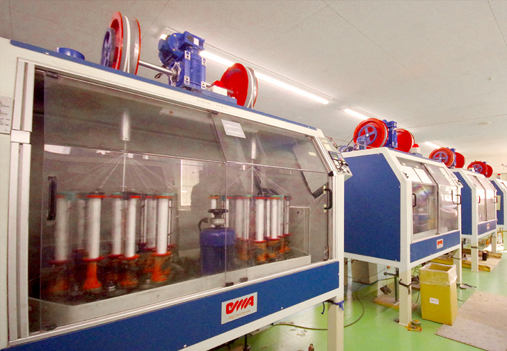 高速回転の機械で生産性にすぐれ繋ぎが少ない製品の生産が可能です。16打、24打、32打、48打と機械の種類があり全てイタリア製です。